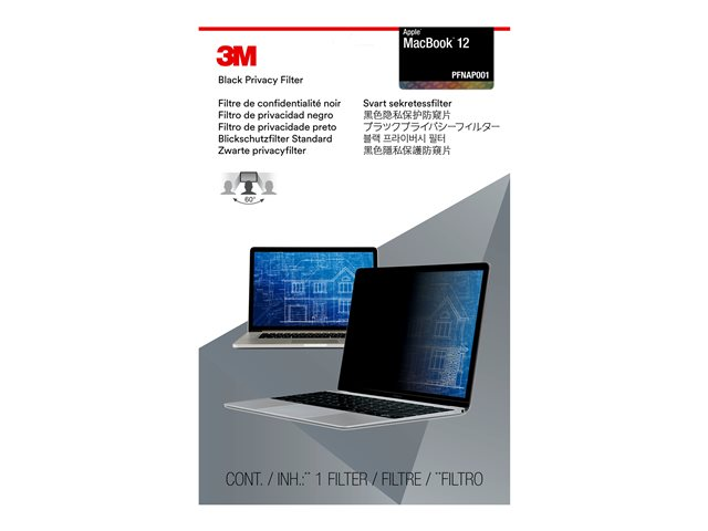 Filtre de confidentialité 3M for MacBook 12" Laptops 16:10 with COMPLY - Filtre de confidentialité pour ordinateur portable - Largeur 12 pouces - noir PFNAP001