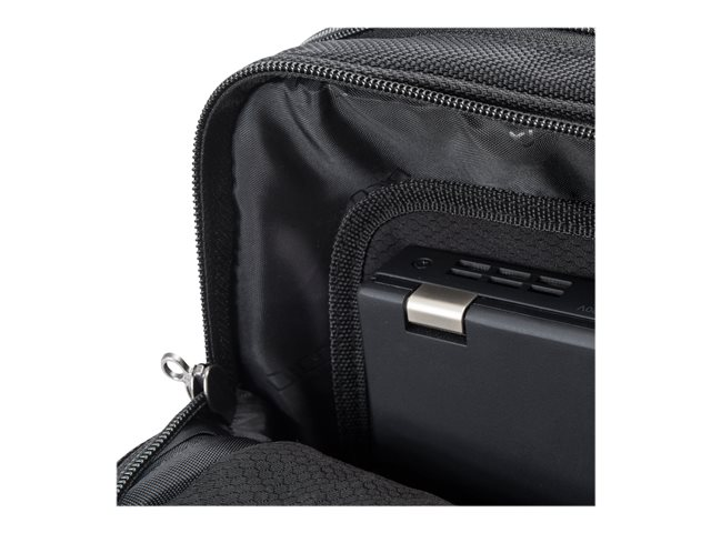 La séparation du système fit-all dans le compartiment ordinateur recouvre votre ordinateur, le protège et s'adapte automatiquement. La mousse légère en EVA perforée placée dans le compartiment verrouillable de l'ordinateur, protège parfaitement les angles de votre appareil, avec un énorme gain de poids. Tenue optimale pour votre ordinateur portable dans le compartiment, assurée par le revêtement anti-glisse. Protection idéale pour votre iPad ou tablette dans le compartiment formé en EVA avec doublure extra douce en nylex. Espace de rangement généreux pour une imprimante, un projecteur et des documents dans le compartiment extensible et le compartiment à fermeture éclair. La poche frontale avec porte-clé et compartiments de rangement organise vos ustensiles personnels et offre de la place pour d'autres accessoires mobiles. Le rembourrage ergonomique du dossier, les sangles réglables en longueur, la poignée confortable et la lanière de fixation assurent un confort de port optimal. Compartiment à fermeture éclair dissimulé pour papiers d'identité. Fond de la sacoche en matière étanche.