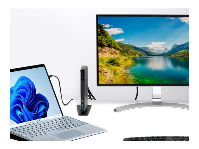 Si vous possédez une Surface équipée d'USB-C et que vous avez besoin de travailler sur plusieurs écrans, la SD4845P est la station d'accueil qu'il vous faut. Un unique câble USB-C vous permet de connecter en Plug & Play jusqu'à trois moniteurs 1080p sans aucun pilote, dongle ou adaptateur. Ce même câble vous permet de recharger votre ordinateur portable avec une alimentation PD 85 W, de connecter votre souris, votre clavier et vos autres accessoires USB. Grâce à une grande vitesse de transfert de données de 10 Gbits/s, votre productivité ne connaîtra jamais de baisse de régime. Consultez le tableau de compatibilité pour voir les appareils pris en charge.