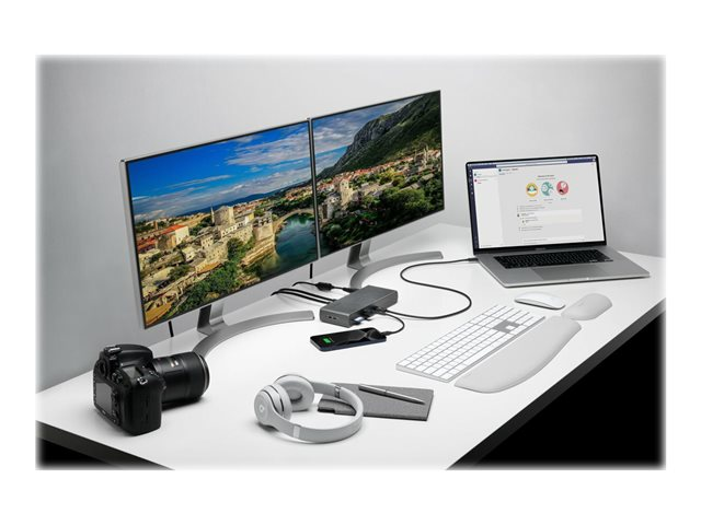 Aînée d'une nouvelle génération, la station d'accueil SD5700T Thunderbolt 4 avec 2 sorties 4K, une alimentation 90 W et compatible Win/Mac offre les avantages de la technologie Thunderbolt pour le monde d'aujourd'hui et de demain. Elle prend en charge les ordinateurs portables Thunderbolt 4 exécutant Windows 10 ou version ultérieure, ainsi que les appareils Thunderbolt 3, USB 4 et USB-C sous Windows 10 et macOS 11 ou versions ultérieures, quel que soit leur nombre. Elle dispose de 11 ports, peut prendre en charge un écran 8K à 30 Hz ou jusqu'à deux écrans 4K à 60 Hz, propose une vitesse de transfert de données de 40 Gbits/s et inclut, entre autres, un lecteur de carte UHS-II SD 4.0 pour plus de rapidité.
