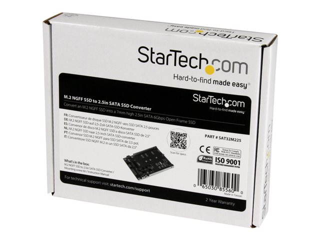 StarTech.com Adaptateur M.2 SSD vers SATA 2,5" - Carte Convertisseur SSD M2 vers SATA 2.5" - Contrôleur de stockage - 1 Canal - SATA 6Gb/s - SATA 6Gb/s - pour P/N: BRACKET125PT, BRACKET125PTP, SATERASER4, SDOCK1EU3P2, SDOCK4U313, USB31C2SAT3
