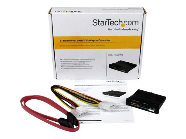 StarTech.com Adaptateur convertisseur bidirectionnel SATA / IDE pour disque dur - 1x IDE femelle - 1x SP4 mâle - 2x SATA plug - Contrôleur de stockage - 1 Canal - SATA 1.5Gb/s - Ultra ATA/133 - noir PATA2SATA3