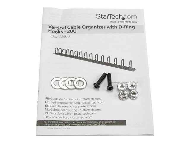 StarTech.com Panneau de gestion de câbles 0U de 91 cm pour rack - Guide-câbles avec anneaux - Organisateur pour câbles (CMVER20UD) - Kit de gestion des câbles à anneaux en D - 91.4 cm - noir - 20U - pour P/N: RK2537BKM, RK4242BK24, RK4242BK30