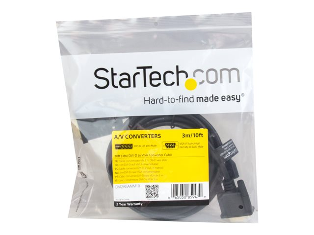 StarTech.com Câble adaptateur DVI vers VGA de 3m - Convertisseur actif DVI-D vers VGA HD15 - M/M - 1920x1200 - Noir - Convertisseur vidéo - DVI - VGA - noir
