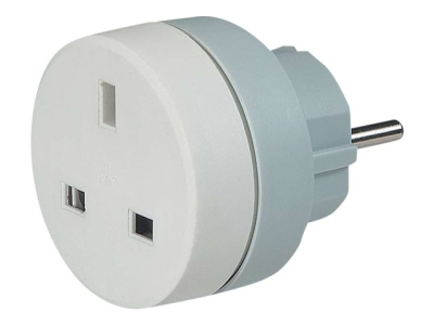 C2G British to French/German Standard Adapter with Safety Shuters - Adaptateur pour prise d'alimentation - bipolaire (M) pour tripolaire (F) - blanc 80810