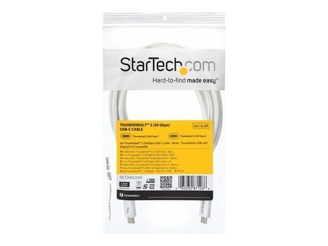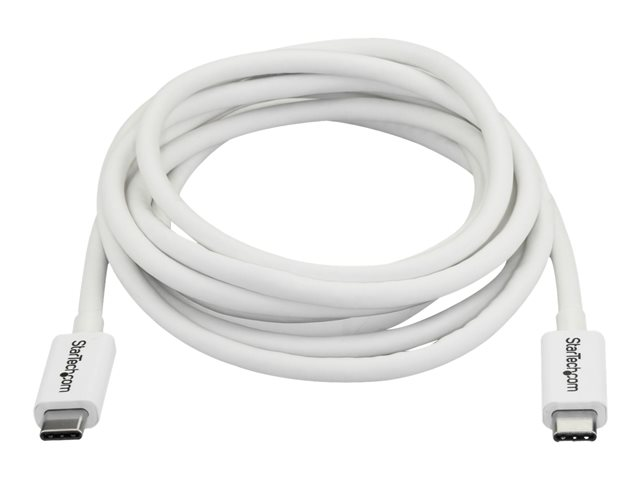 StarTech.com 6.6ft (2m) Thunderbolt 3 Cable, 20Gbps, 100W PD, 4K Video, Thunderbolt-Certified, Compatible w/ TB4/USB 3.2/DisplayPort - Câble Thunderbolt - 24 pin USB-C (M) pour 24 pin USB-C (M) - USB 3.1 Gen 2 / Thunderbolt 3 / DisplayPort 1.2 - 2 m - support 4K - blanc - pour P/N: CDP2HDUACP, CDP2HDUACPW TBLT3MM2MW