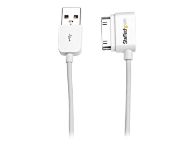 Sinon, StarTech.com propose aussi un [%product id="USB2ADC2MR" text="câble de station d'accueil de 30 broches Apple à angle vers la droite vers USB de 2 m"%] (USB2ADC2MR), aussi pratique que le câble à angle vers la gauche, mais qui vous permet de brancher votre iPhone, votre iPod ou votre iPad de l'autre côté.