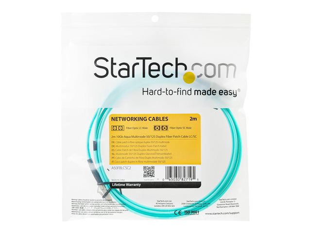 Câble Fibre Optique Multimode 2m LC/UPC à LC/UPC OM3, Fibre Zipcord Full Duplex 50/125µm, Réseaux 100G, LOMMF/VCSEL, <0.3dB Faible Perte d'Insertion, Cordon Patch Fibre LSZH (A50FBLCLC2).