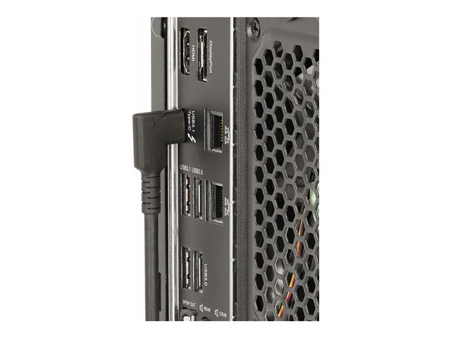 Connectez une source USB 10 Gbps et des périphériques, à l'aide de ce câble USB Type-C robuste à angle droit. Positionnez la connexion USB-C à angle droit le long de l'appareil pour réduire l'encombrement des câbles et éviter les tensions prolongées dues à la flexion.