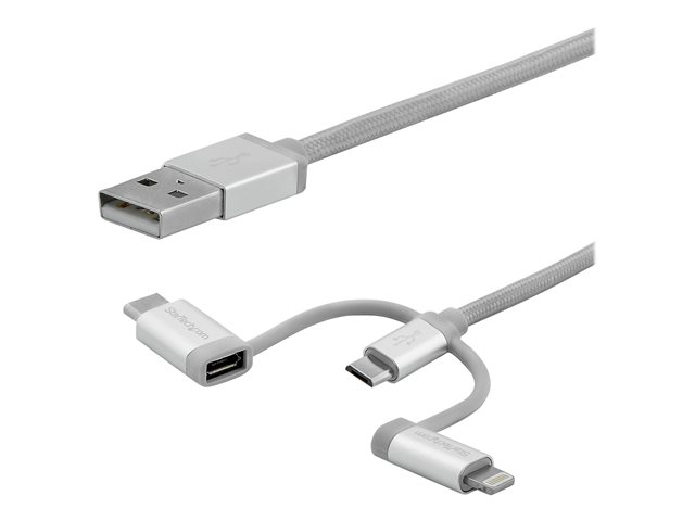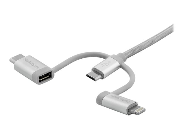 StarTech.com Câble USB multi connecteur de 2 m - Lightning, USB-C, Micro USB (LTCUB2MGR) - Kit câble USB - argent