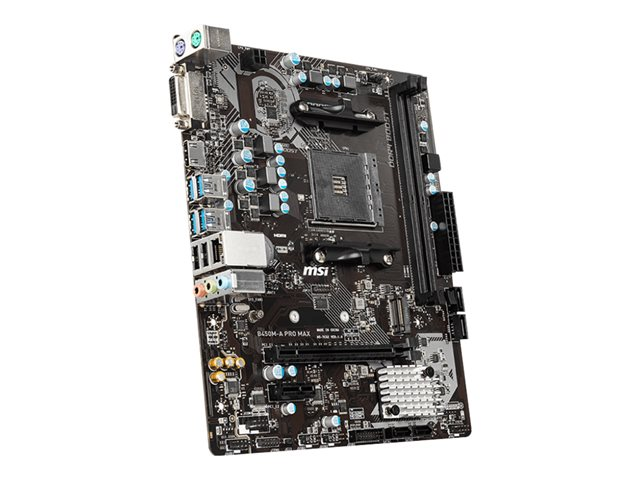 MSI B450M-A PRO MAX - Carte-mère - micro ATX - Socket AM4 - AMD B450 Chipset - USB 3.2 Gen 1 - Gigabit LAN - carte graphique embarquée (unité centrale requise) - audio HD (8 canaux)