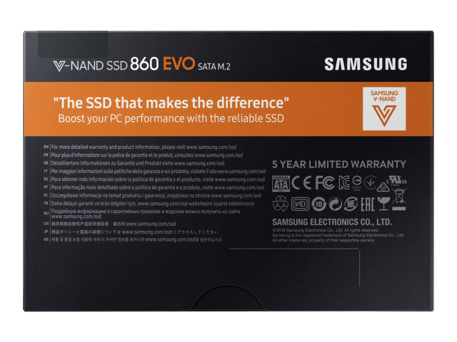 Samsung 860 EVO MZ-N6E500BW - SSD - chiffré - 500 Go - interne - M.2 2280 - SATA 6Gb/s - mémoire tampon : 512 Mo - AES 256 bits - TCG Opal Encryption 2.0