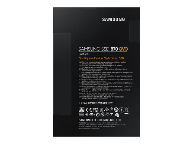 Le 870 QVO fait partie de la deuxième génération des SSD QLC de Samsung. Il offre une solution unique aux utilisateurs qui veulent booster leur ordinateur ou ordinateur portable avec la plus grosse capacité de mémoire disponible, sans compromis sur la performance.