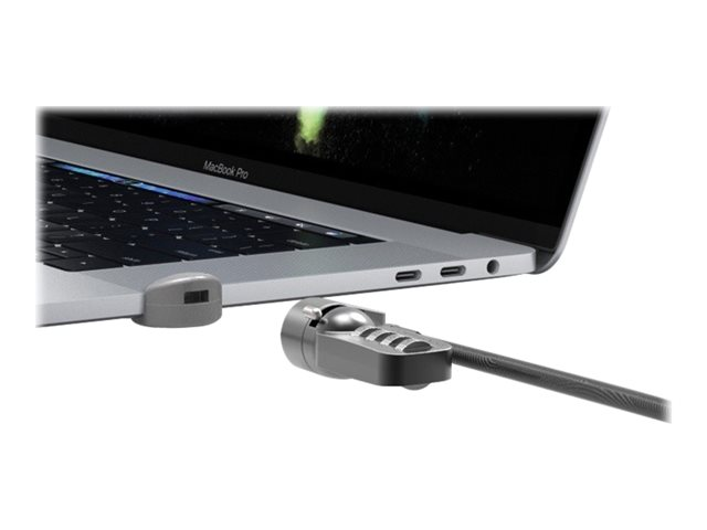 Solution de sécurité de verrouillage MacBook Pro de pointe, adaptateur à profil bas compatible avec les verrous de câble T-Bar standard, fonctionne pour les modèles de 15" et de 13" avec quatre ports Thunderbolt 3, installation facile et rapide, compatible avec les modèles MacBook Pro avec des fentes de ventilation sur les côtés.