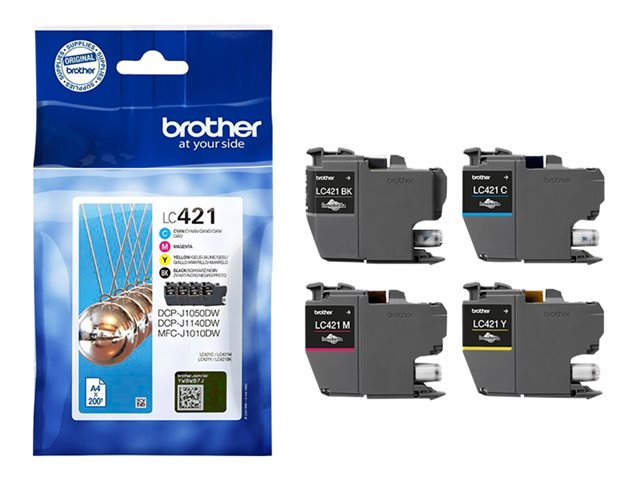 Brother LC421 - Pack de 4 - noir, jaune, cyan, magenta - original - cartouche d'encre - pour Brother DCP-J1140DW, MFC-J1010DW, MFC-J1012DW