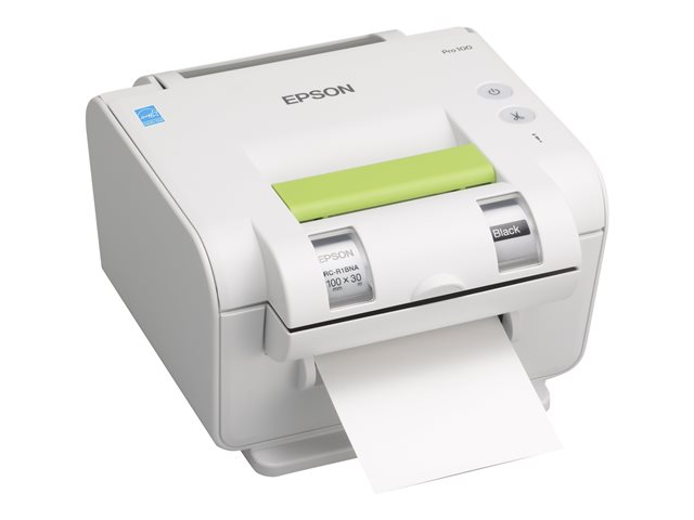 Epson LabelWorks Pro100 - Étiqueteuse - Noir et blanc - thermique direct/transfert thermique - Rouleau (1 cm) - 300 ppp - jusqu'à 20 mm/sec - USB - outil de coupe - vert, gris pâle C51CB11020