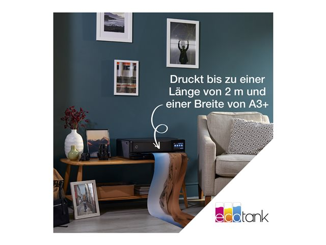 Laissez libre cours à votre créativité avec de superbes photos et documents au format A3+ à un coût d'impression par page incroyablement bas. Imprimez, copiez et numérisez facilement grâce à l'impressionnant écran tactile couleur de 10,9 cm, à la gestion des supports à 5 chemins et au système d'encre 6 couleurs innovant. Sans cartouche à remplacer et avec ses fonctions de connectivité flexibles, c'est l'imprimante parfaite pour la famille artistique moderne.