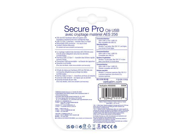 Verbatim Store 'n' Go Secure Pro - Clé USB - chiffré - 64 Go - USB 3.0