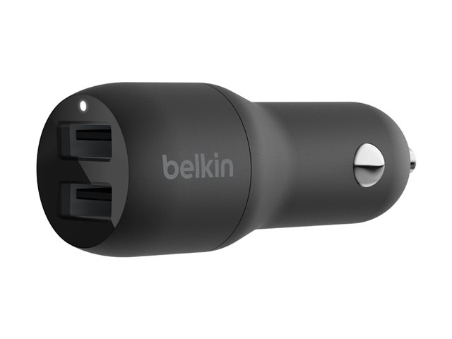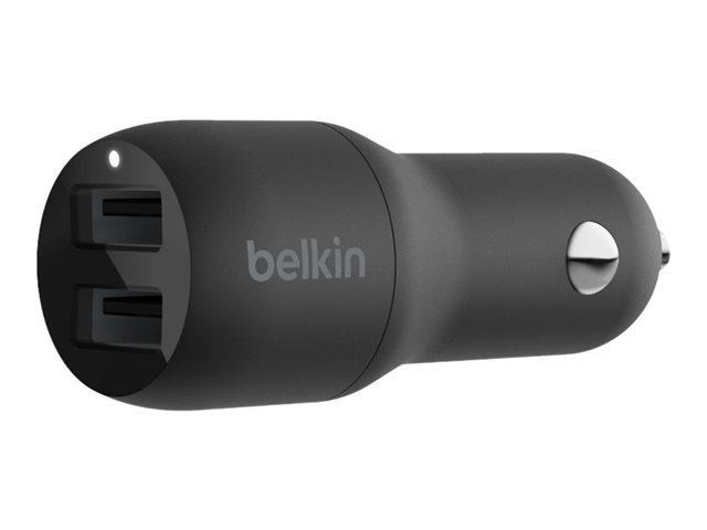 Belkin BOOST CHARGE Double chargeur - Adaptateur d'alimentation pour voiture - 24 Watt - 4.8 A - 2 connecteurs de sortie (USB) - noir