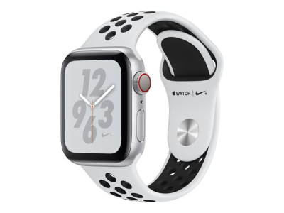 Apple Watch Nike+ Series 4 (GPS + Cellular) - 40 mm - aluminium argenté - montre intelligente avec bracelet sport Nike - fluoroélastomère - platine pure/noir - taille de bande 130-200 mm - 16 Go - Wi-Fi, Bluetooth - 4G - 30.1 g