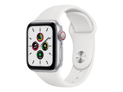 Apple Watch SE (GPS + Cellular) - 40 mm - aluminium argenté - montre intelligente avec bande sport - fluoroélastomère - blanc - taille du bracelet : S/M/L - 32 Go - Wi-Fi, Bluetooth - 4G - 30.68 g