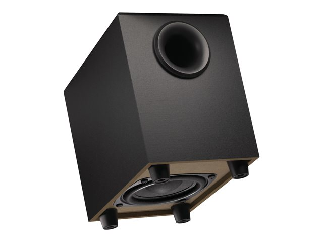 Ressentez la puissance des graves. Un caisson de basses orienté vers le bas et équipé d'un transducteur fournit des graves riches grâce à ses haut-parleurs. Profitez d'un son supérieur sans pour autant sacrifier de l'espace qui pourrait s'avérer utile sur votre bureau. La conception inclinée des haut-parleurs Z213 permet de diriger le son tout droit dans vos oreilles.