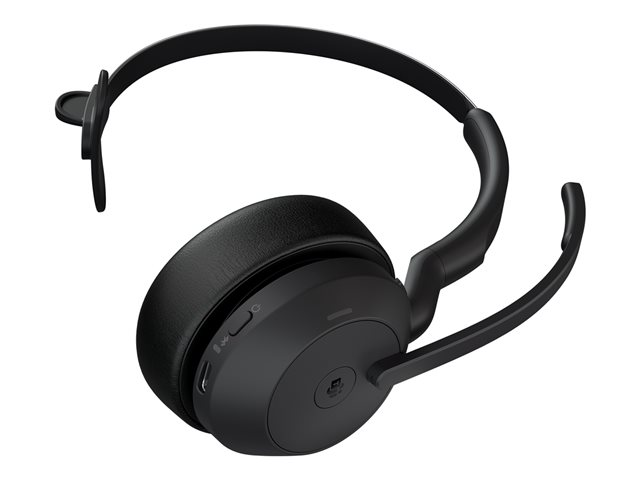 Jabra Evolve2 55 MS Mono - Micro-casque - sur-oreille - Bluetooth - sans fil - Suppresseur de bruit actif - USB-C via un adaptateur Bluetooth - noir - avec support de chargement - certifié Zoom, Cisco Webex Certified, Certifié Tencent Meeting, Certifié Alcatel-Lucent, Certifié Avaya, Certifié Unify, Certifié MFi, Certifié Google Meet, Certifié Amazon Chime 25599-899-989