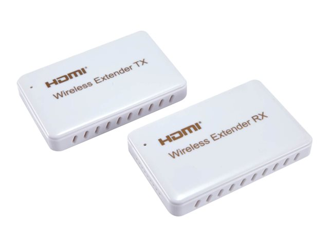 Cet extendeur permet de diffuser une source audio et vidéo Full HD sans fil. La portée maximale est de 30 mètres ce qui permet une grande distance entre les deux appareils. Cet extendeur HDMI permet de diffuser des sources en full HD. Il s'utilise uniquement à l'intérieur d'une même pièce (ne traverse pas les murs et les cloisons). Utilisant une technologie haute fréquence, le signal n'est pas perturbé par les autres signaux sans fil. Cette référence comprend le couple Emetteur + Récepteur pour une utilisation immédiate du produit.