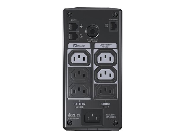 | Détails sur les connecteurs de sortie | 3 x power IEC 60320 C13 (anti-surtensions) 3 x power IEC 60320 C13 (anti-coupures et anti-surtensions) |