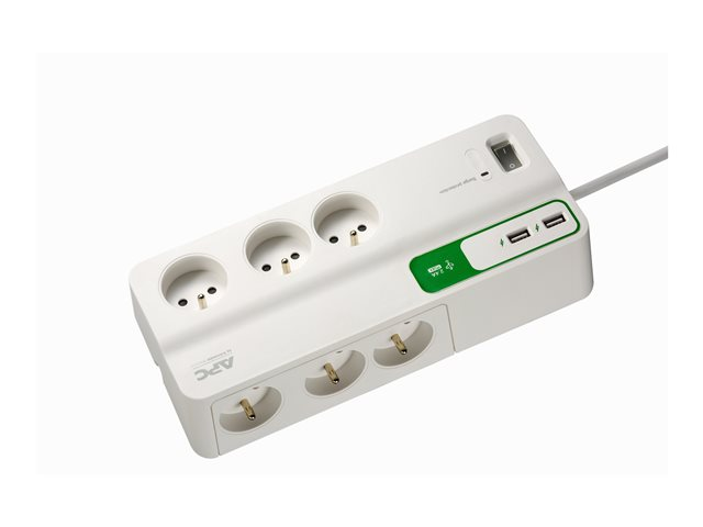 APC SurgeArrest Essentiel - Protection contre les surtensions - CA 230 V - 2300 Watt - connecteurs de sortie : 6 - 2 m cordon - Belgique, France - blanc PM6U-FR