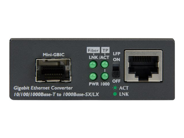 StarTech.com Convertisseur RJ45 Gigabit Ethernet sur Fibre Optique avec SFP Ouvert - 1000Mbps MonoMode/MultiMode - Convertisseur de média à fibre optique - 1GbE - 10Base-T, 1000Base-LX, 1000Base-SX, 100Base-TX, 1000Base-T - RJ-45 / SFP (mini-GBIC) - pour P/N: GLCLHSMDSTTA, GLCSXMMDST, GLCSXMMDSTT, GLCTEST, MASFP1GBTXST, SFP1GELXST
